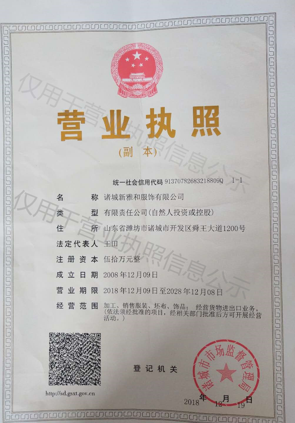 諸城新雅和服飾有限公司是一家擁有自營(yíng)進(jìn)出口權(quán)、集貿(mào)工一體的現(xiàn)代化針織服裝加工出口企業(yè)。公司座落在諸城開發(fā)區(qū)橫四路北206國(guó)道以東。公司現(xiàn)有現(xiàn)代化日本進(jìn)口電腦縫制設(shè)備200多臺(tái)套,職工300人,年出口創(chuàng)匯1000萬美元。公司擁有一個(gè)團(tuán)結(jié)務(wù)實(shí)、業(yè)務(wù)嫻熟、反應(yīng)迅速、年輕化、現(xiàn)代化的管理團(tuán)隊(duì)。